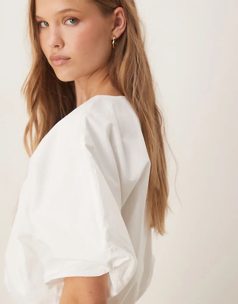 Укороченный тканый топ VILA puffball белого цвета