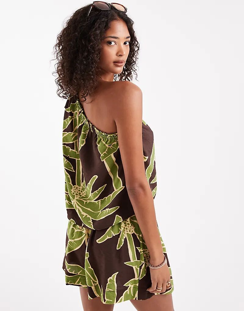 Топ на одно плечо ASOS DESIGN с принтом пальмы
