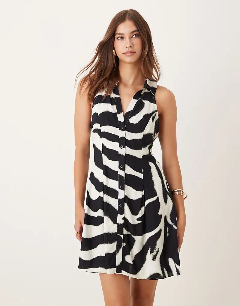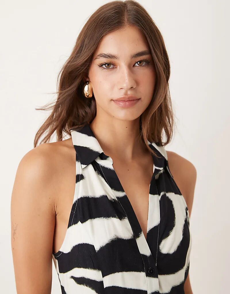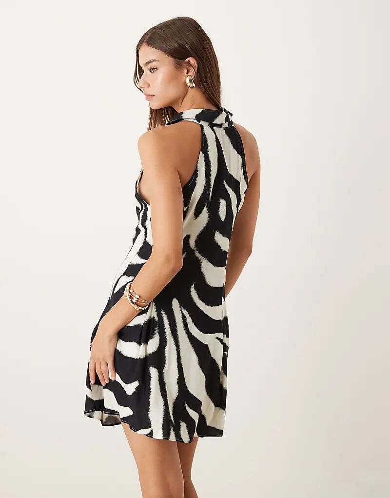 Платье-рубашка мини ASOS DESIGN с бретелями через шею цвета зебры