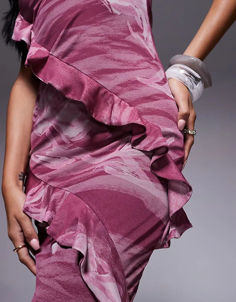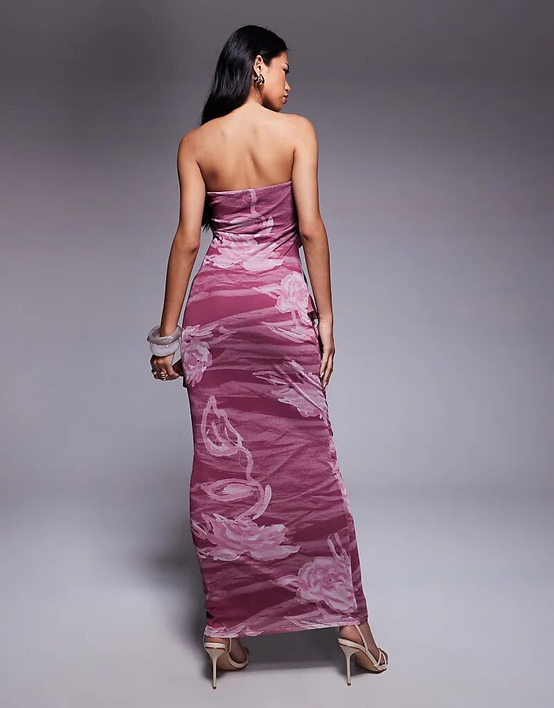 Платье-бандо миди ASOS DESIGN с рюшами и цветочным принтом румян