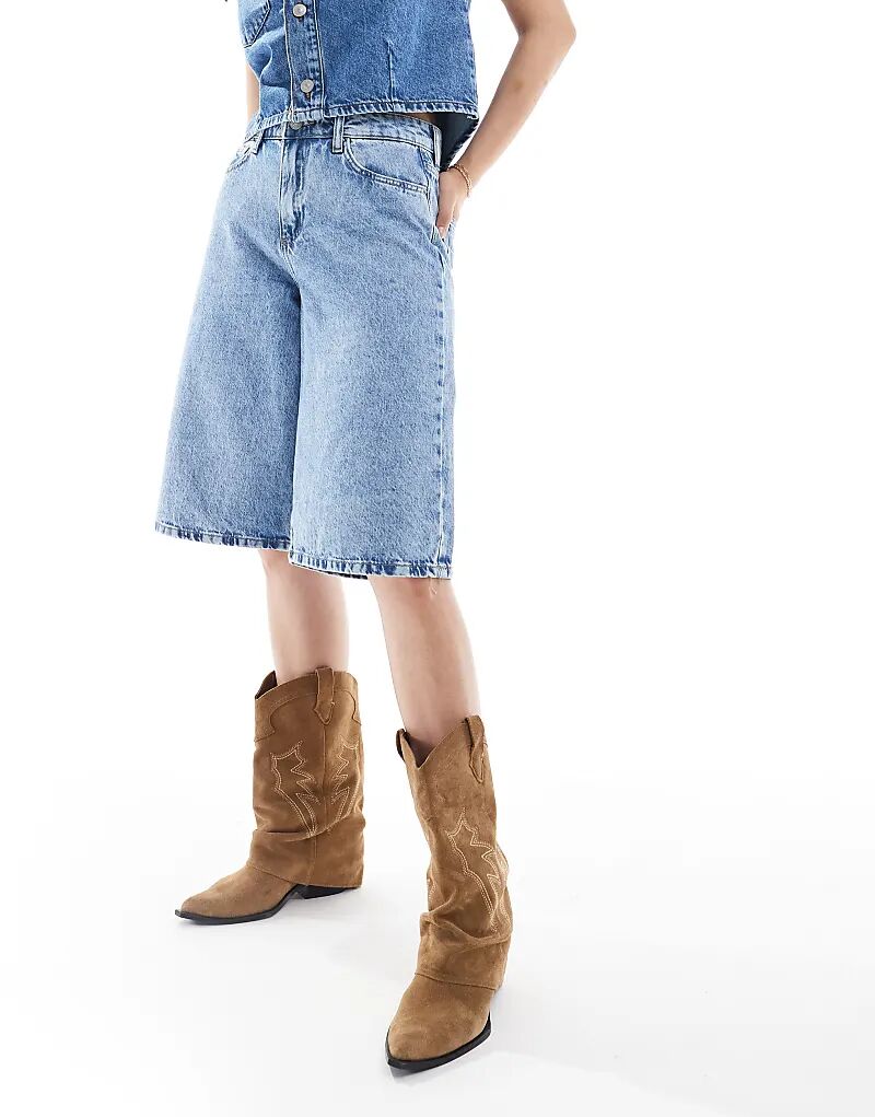 Длинные джинсовые шорты Pieces средне-синего цвета