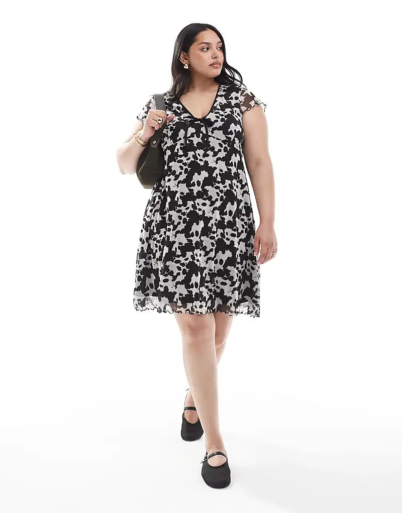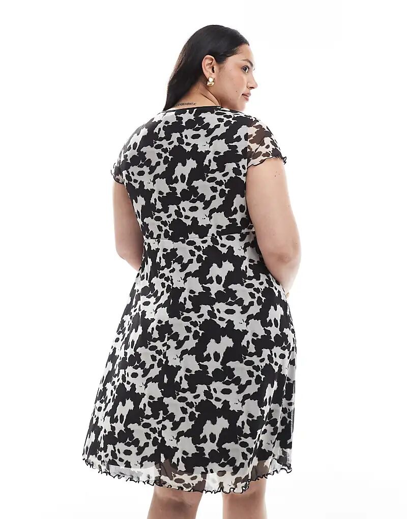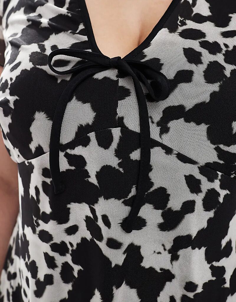 Коричневое мини-платье с принтом коровы New Look Curve New Look Plus