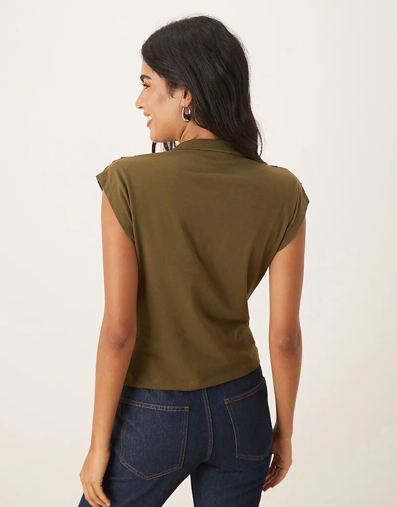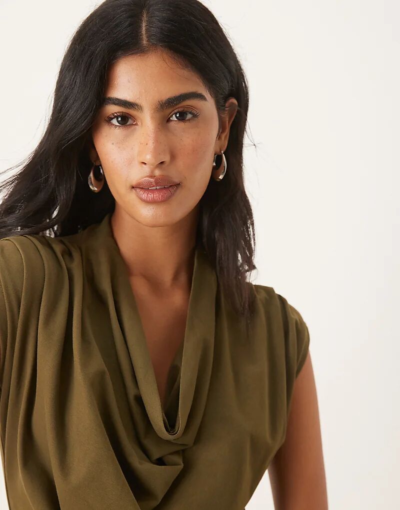 Футболка ASOS DESIGN с капюшоном и драпировкой оливкового цвета