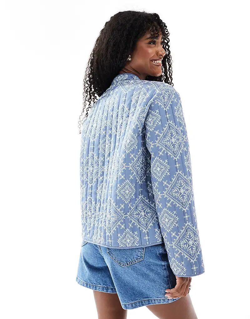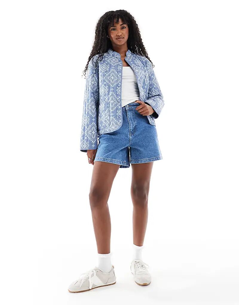 Стеганая куртка Vero Moda с синим геометрическим принтом