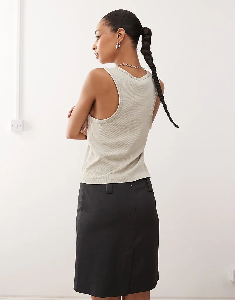 Юбка миди Monki, приталенная, темно-серого меланжа
