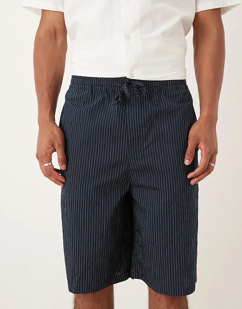 Длинные шорты ASOS DESIGN в тонкую темно-синюю полоску