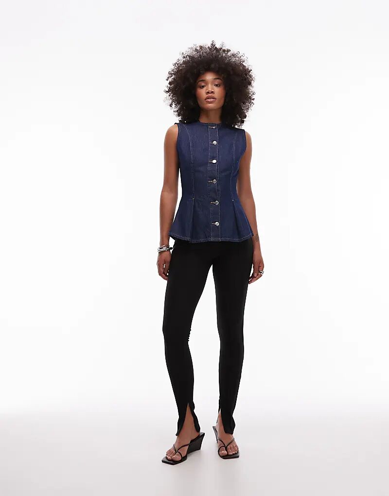 Джинсовый топ Topshop с баской и плиссе цвета индиго