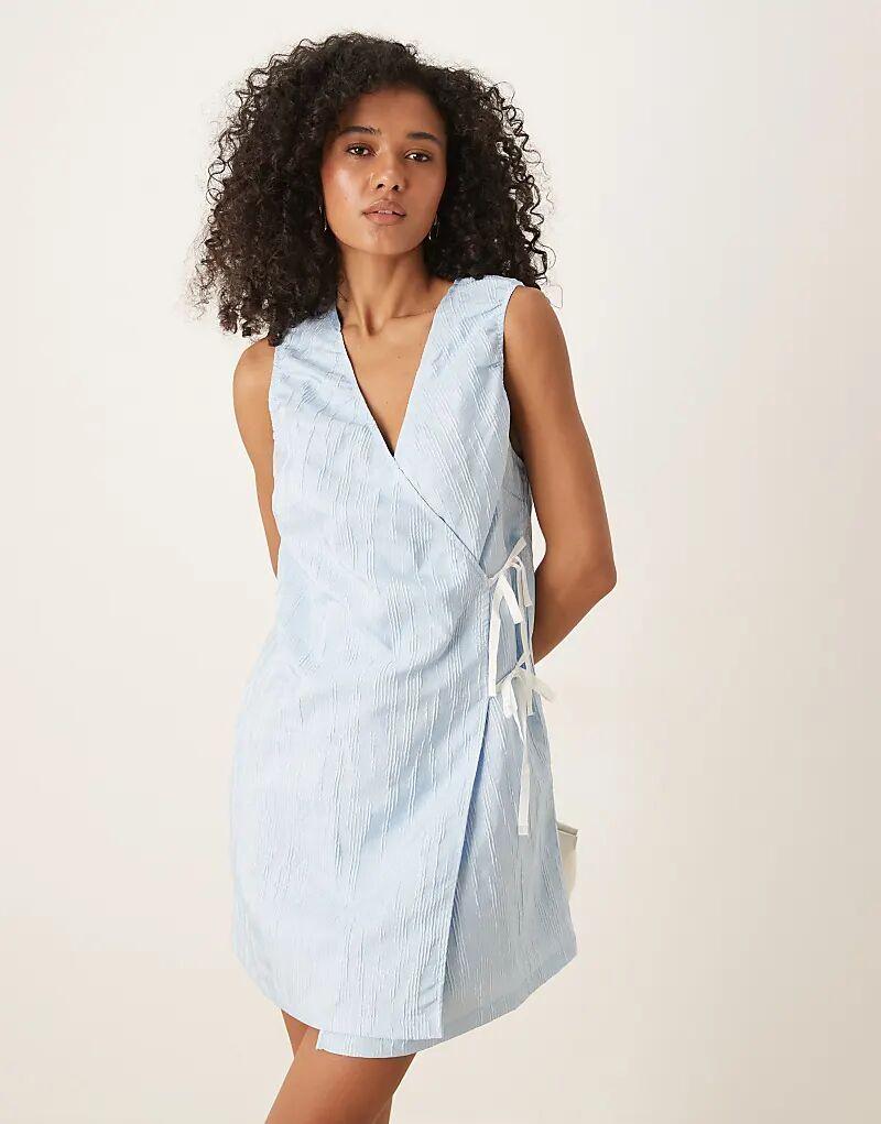 Мини-платье Ghospell с контрастным бантом синего цвета