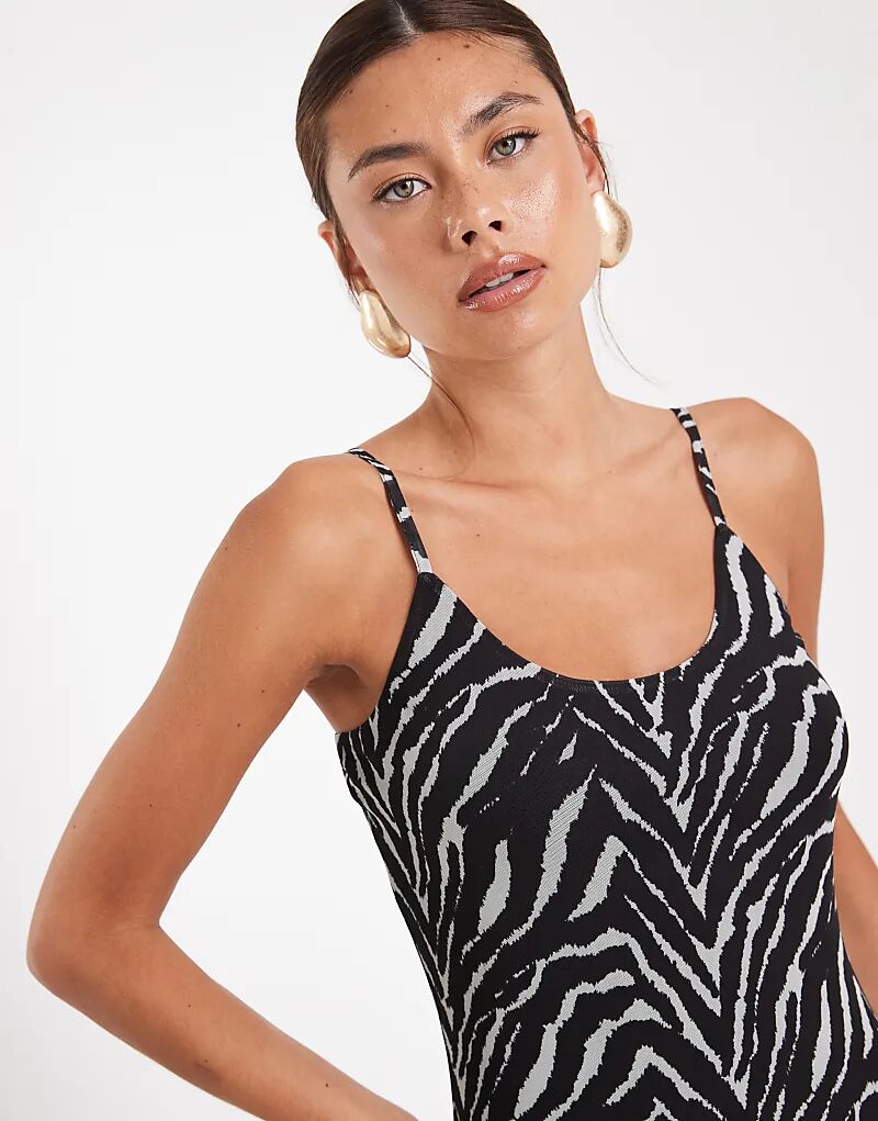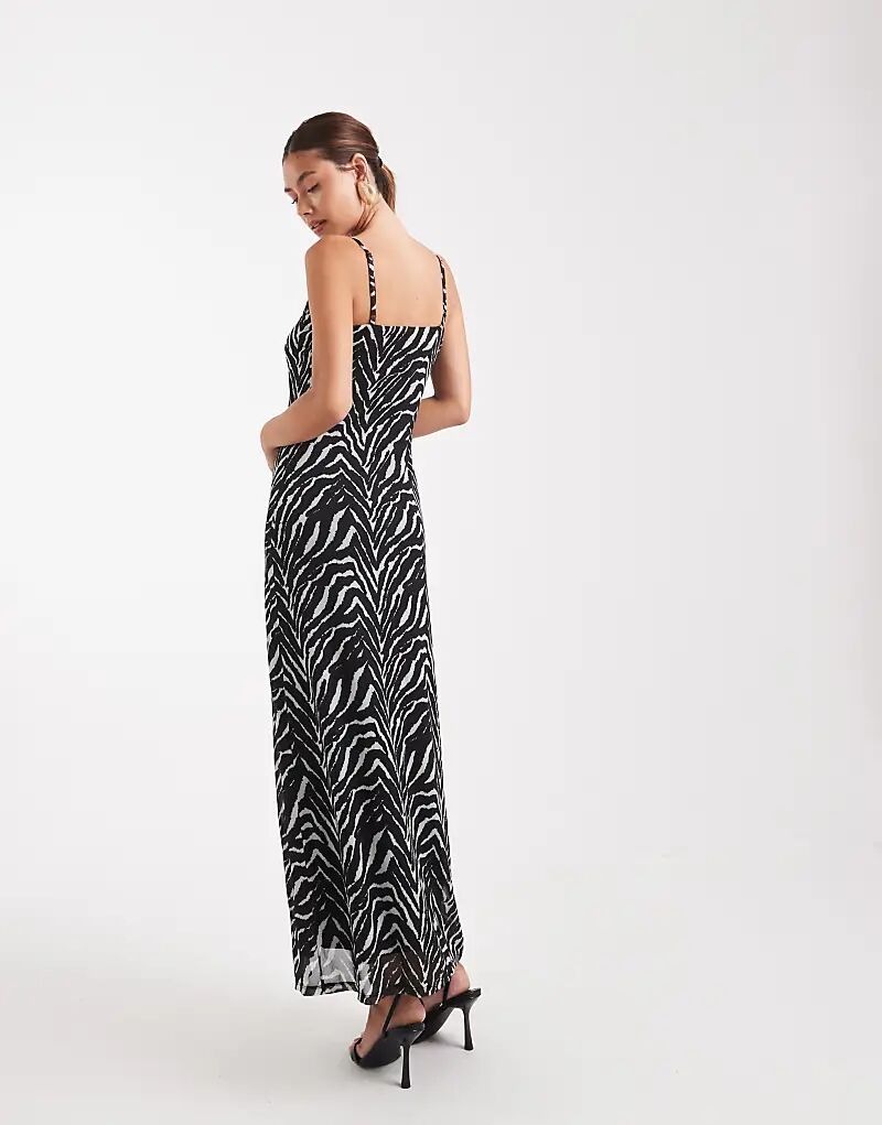 Платье макси Vero Moda с сетчатым лифом и бретельками, с принтом зебры