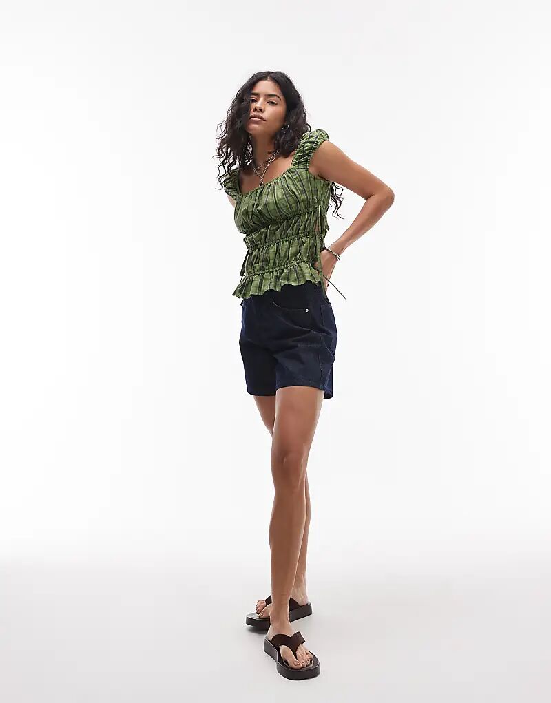 Джинсовые шорты Topshop Editor с необработанным краем цвета индиго
