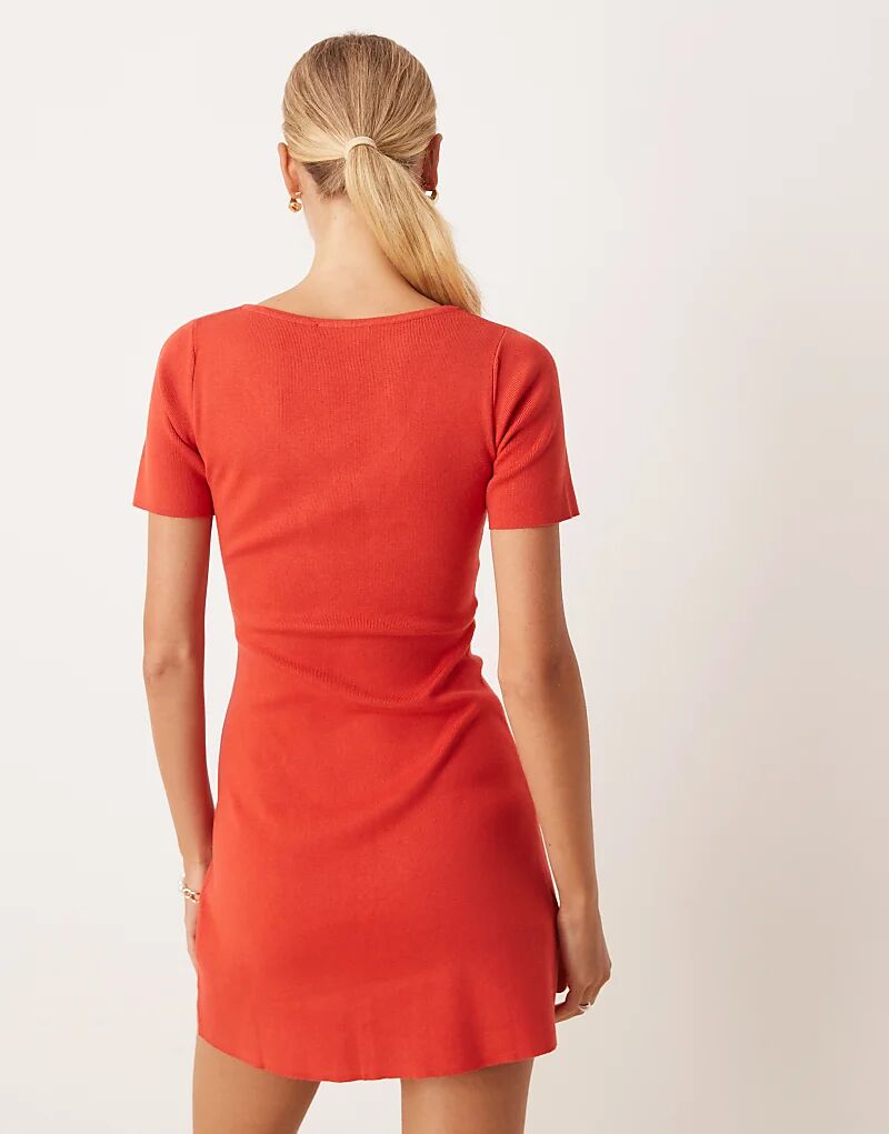 Платье-мини из плотного трикотажа Mango красного цвета с завязкой