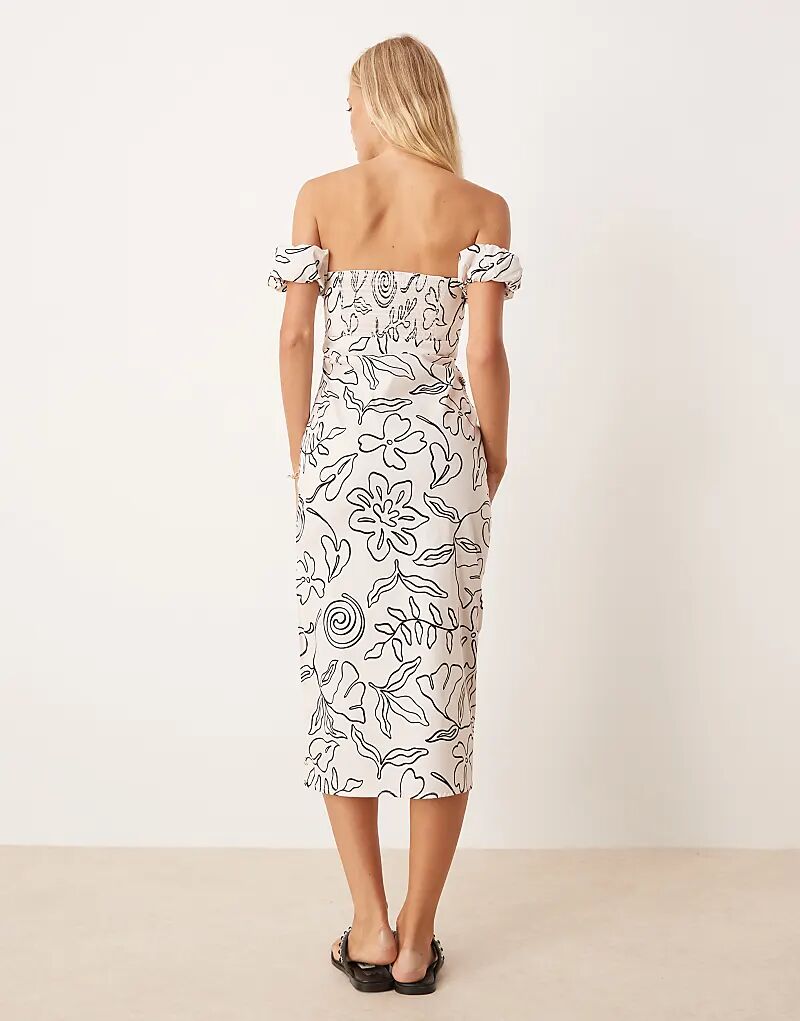 Платье миди Mango с открытыми плечами и монохромным волнистым принтом
