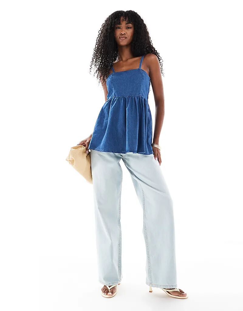 Длинный джинсовый топ с баской ASOS DESIGN, средне-голубой