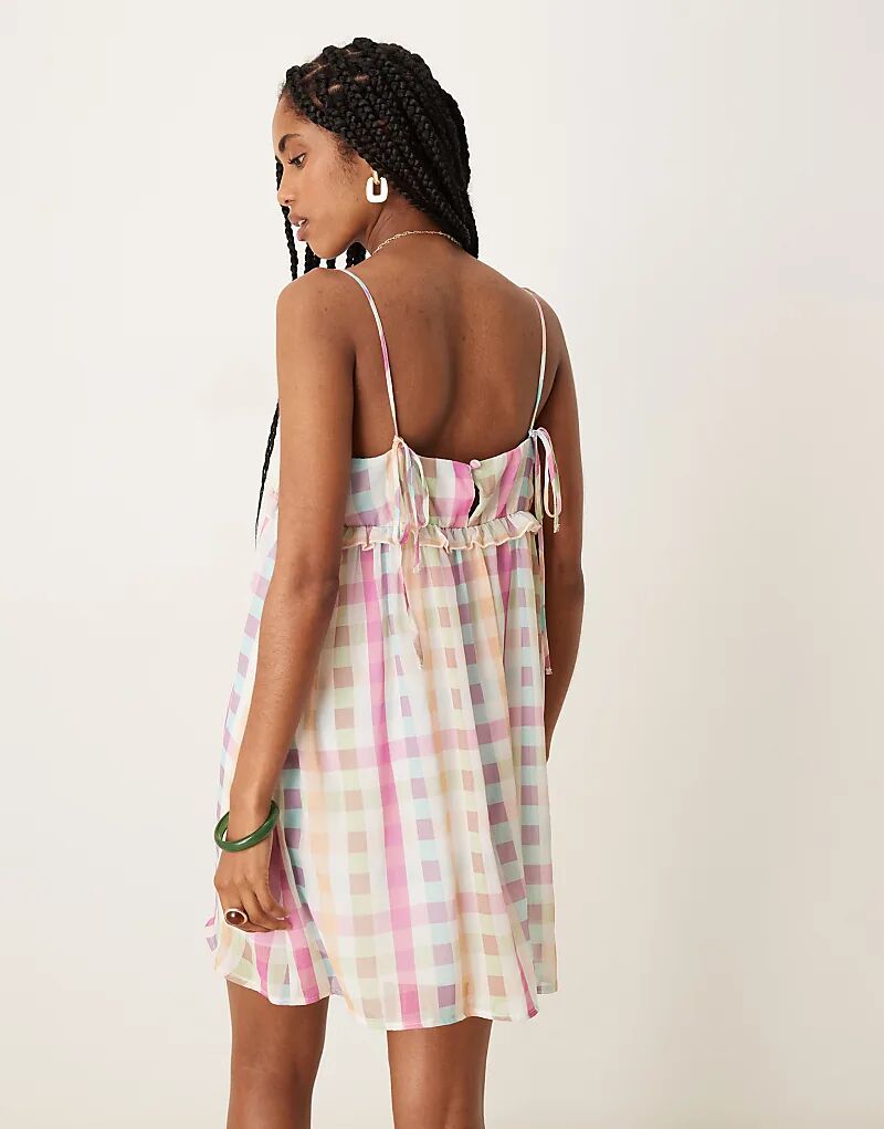 Мини-платье ASOS DESIGN с завязками на бретелях в синюю клетку