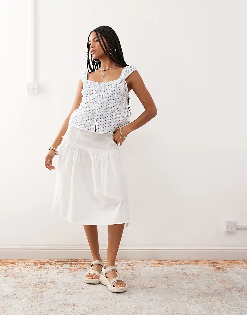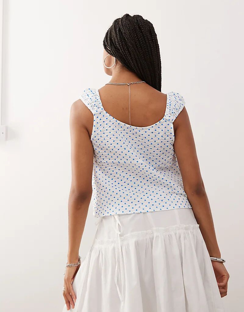 COLLUSION Топ бэби-долл с завязками спереди в синий горошек