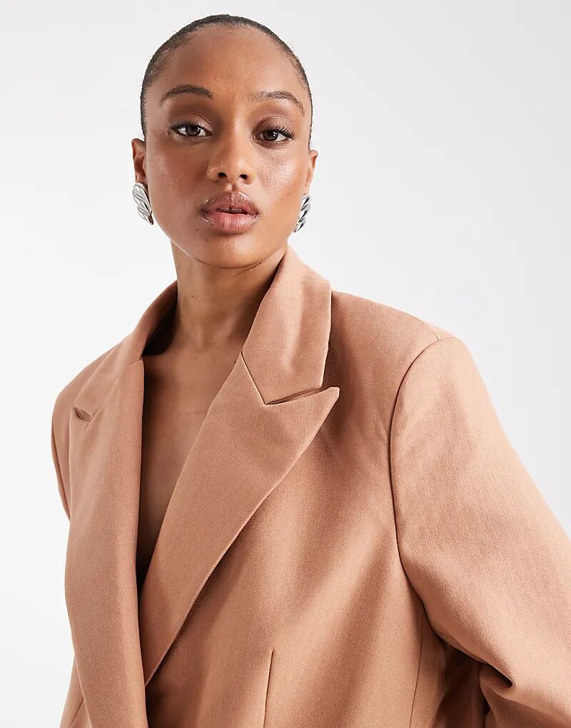 Строгий пиджак Vero Moda Tall с узором «ёлочка» цвета мокко