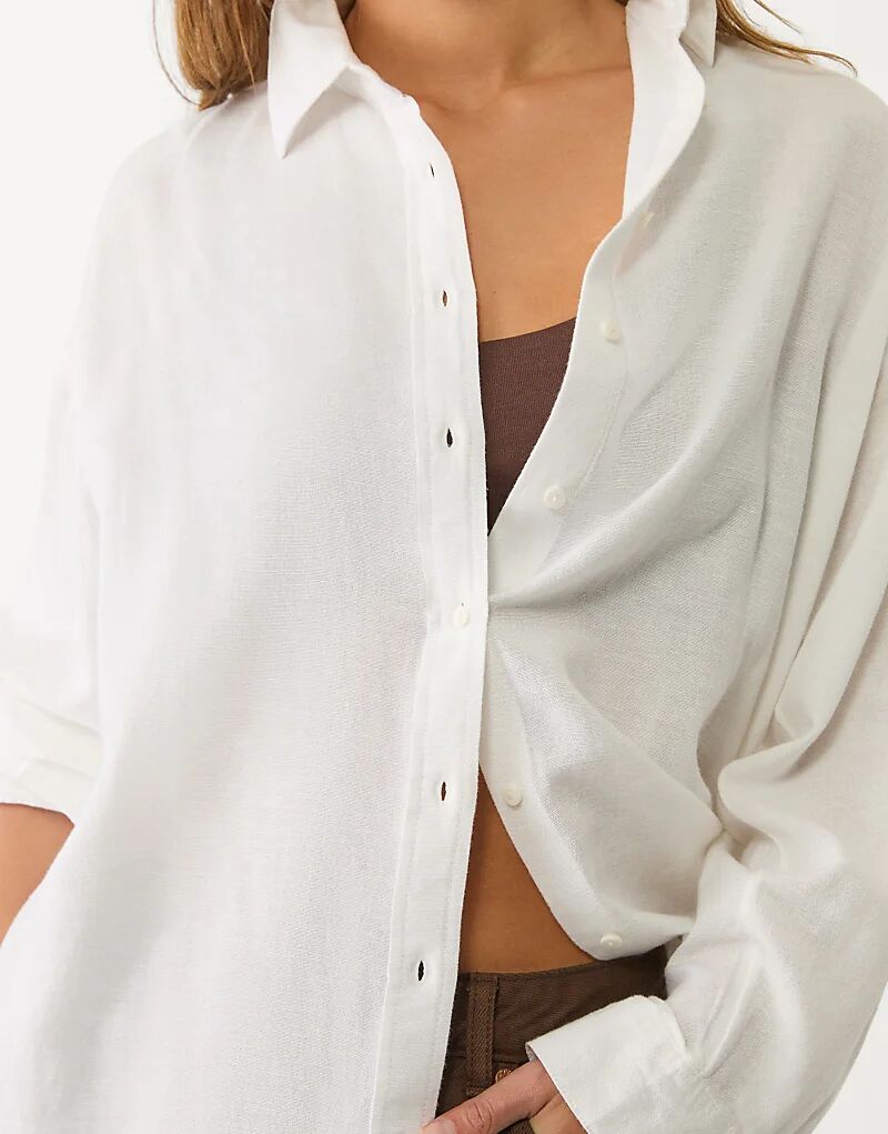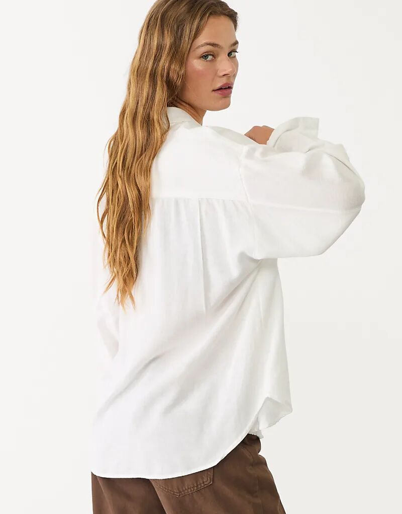 Рубашка Stradivarius из льняной смеси белого цвета 4 886₽