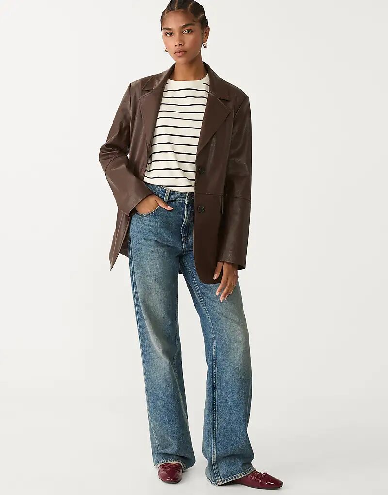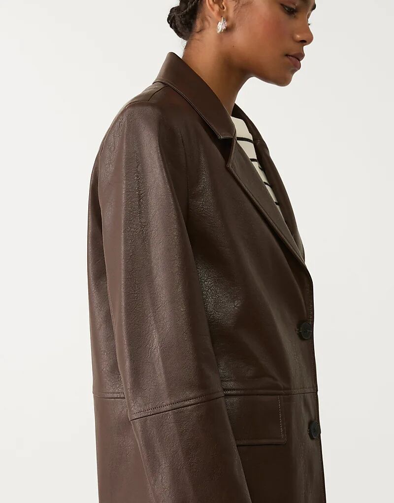 Блейзер Stradivarius из искусственной кожи коричневого цвета