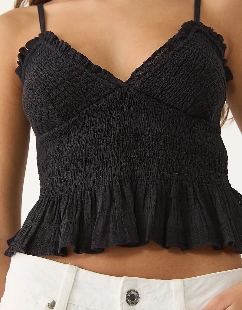 Текстурированный топ Stradivarius с оборкой черного цвета