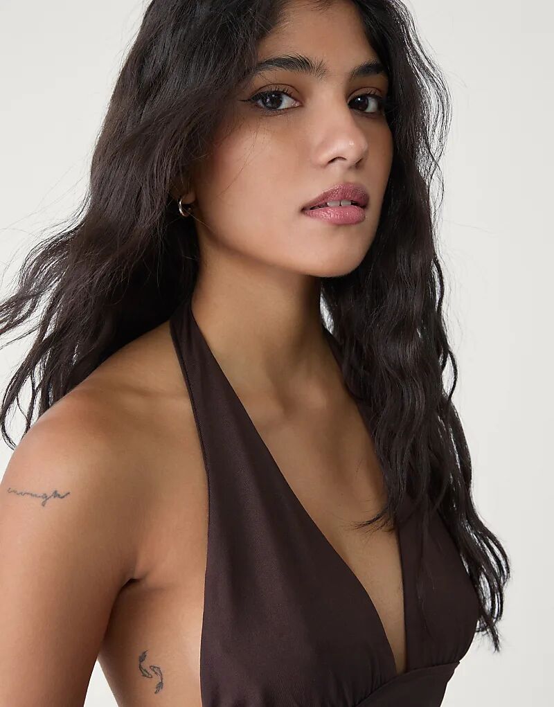 Топ Stradivarius со сборками на бретелях коричневого цвета 2 452₽