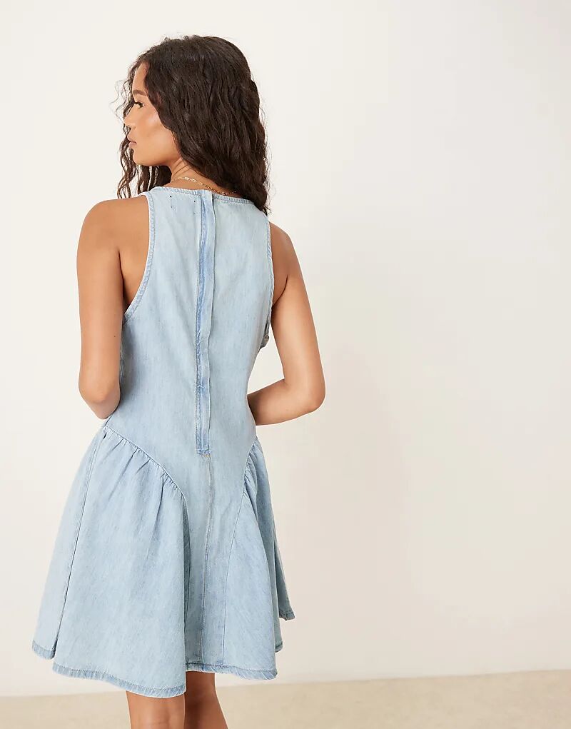 Джинсовое мини-платье ASOS DESIGN с боковыми вставками и глубоким вырезом, выбеленное