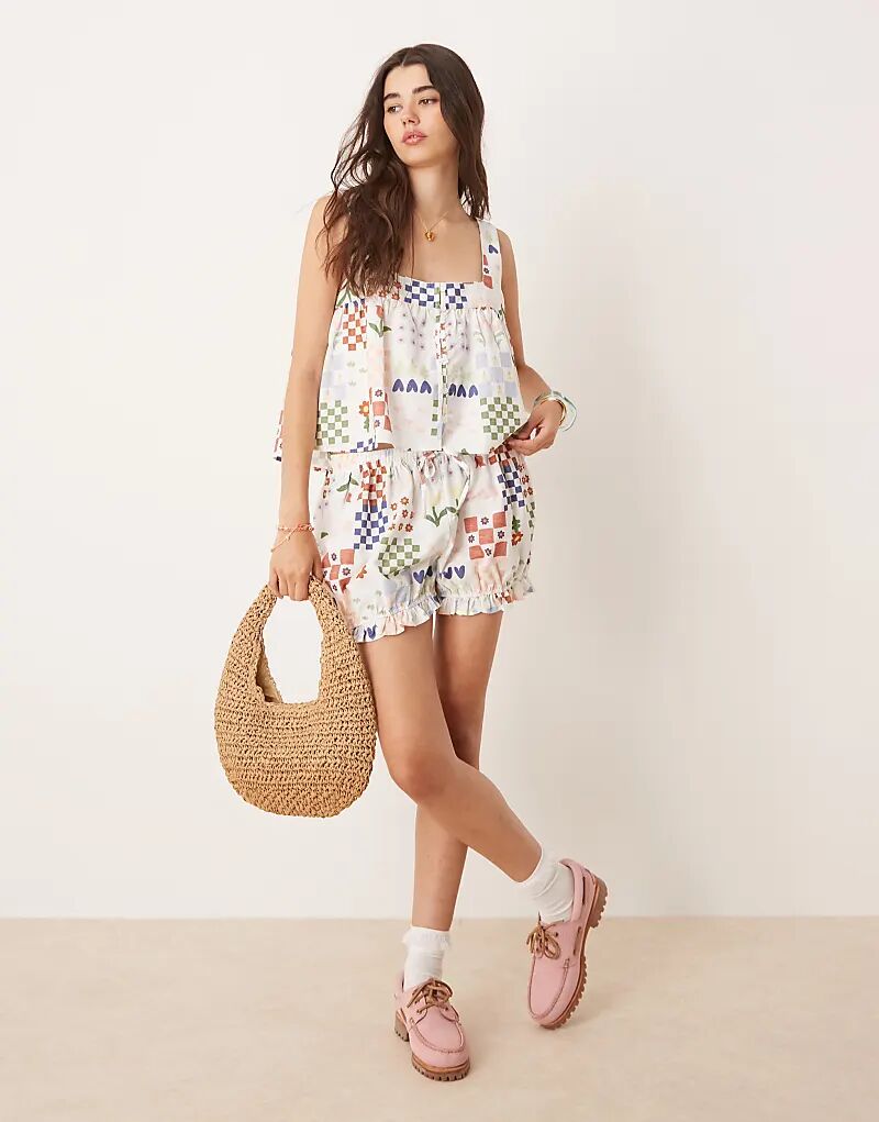 Топ-бюстгальтер ASOS DESIGN Baby Doll с плиточным принтом
