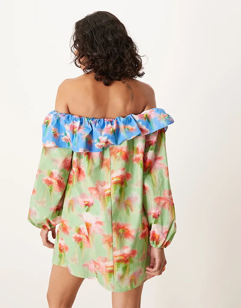 Мини-платье ASOS DESIGN с открытыми плечами и оборками, с цветочным принтом