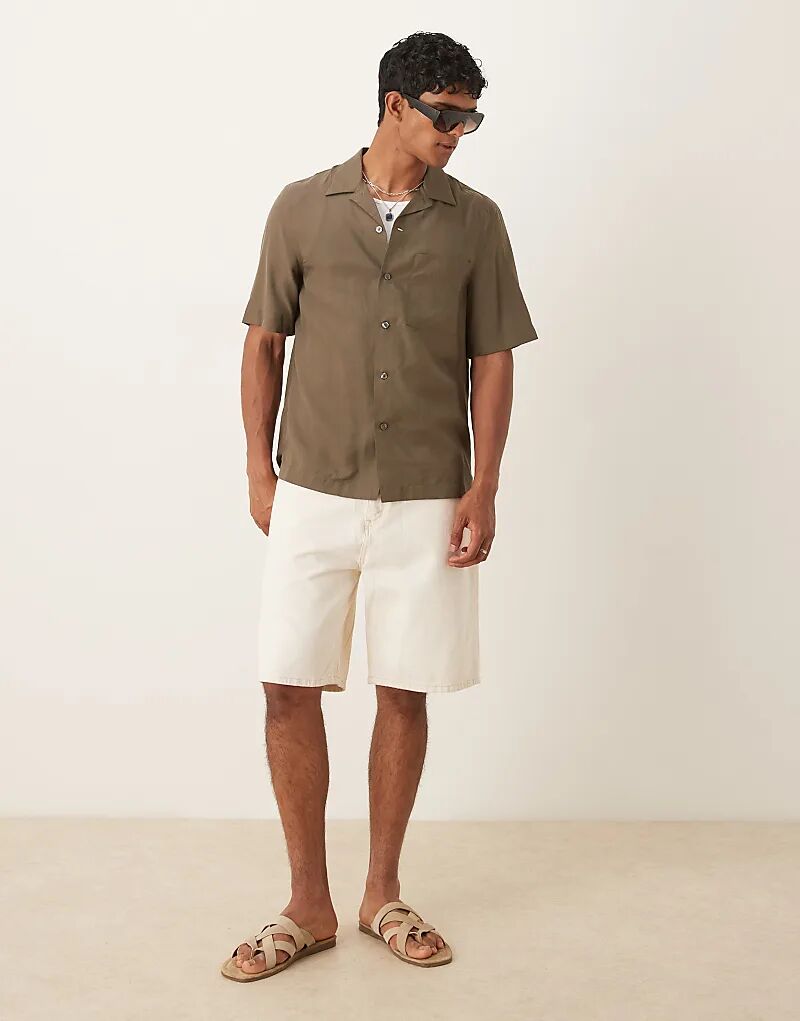 Рубашка с короткими рукавами Mango коричневого цвета 7 388₽