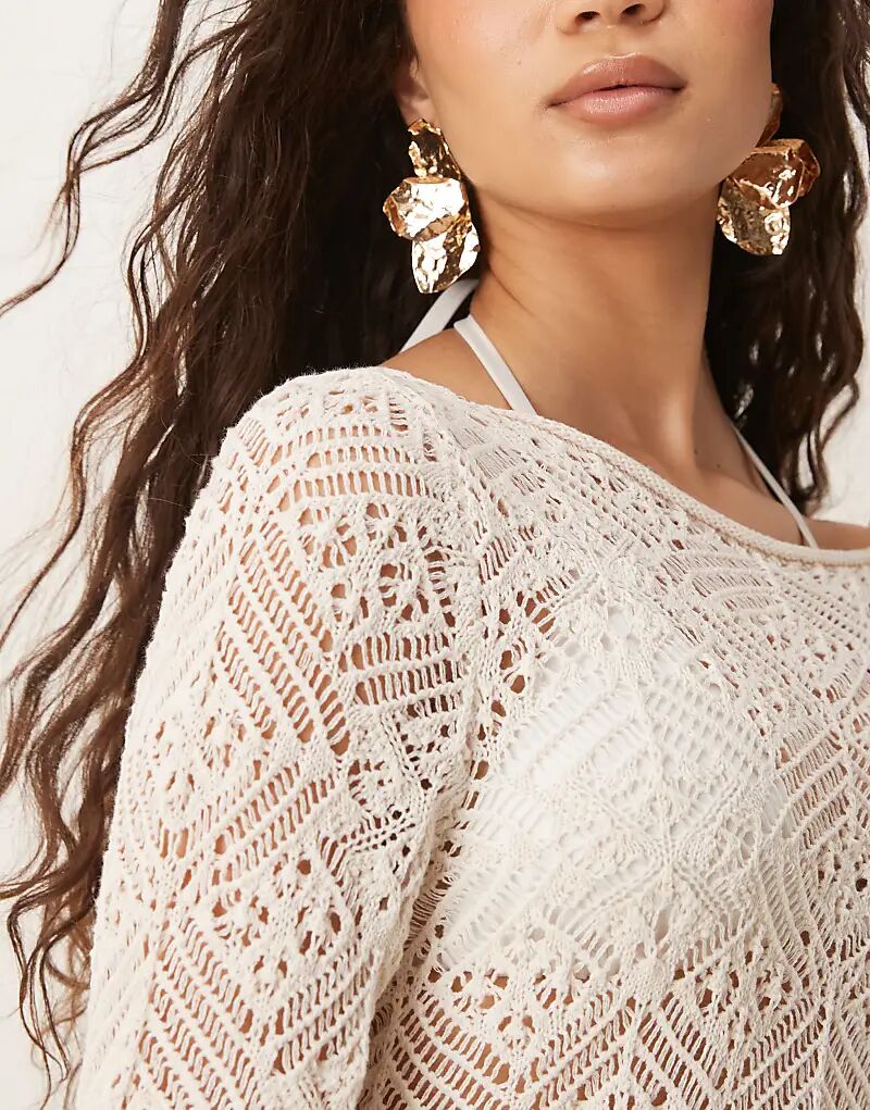 Вязаный крючком комбинезон ASOS DESIGN цвета экрю