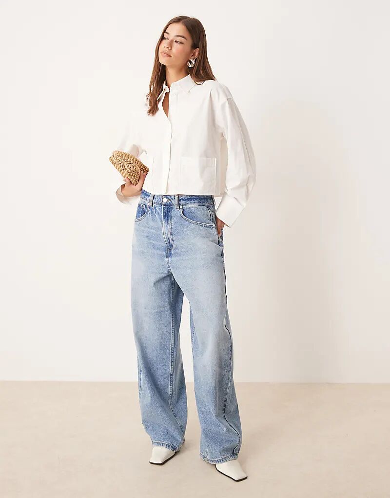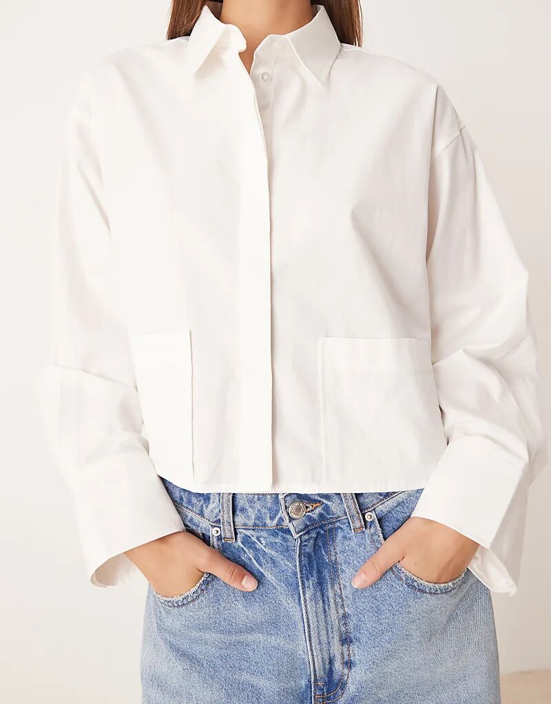 Укороченная рубашка YAS премиум-класса с карманами белого цвета