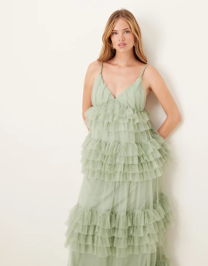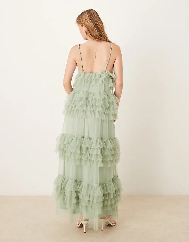 Платье макси YAS из многоуровневого тюля цвета шалфея 5 834₽