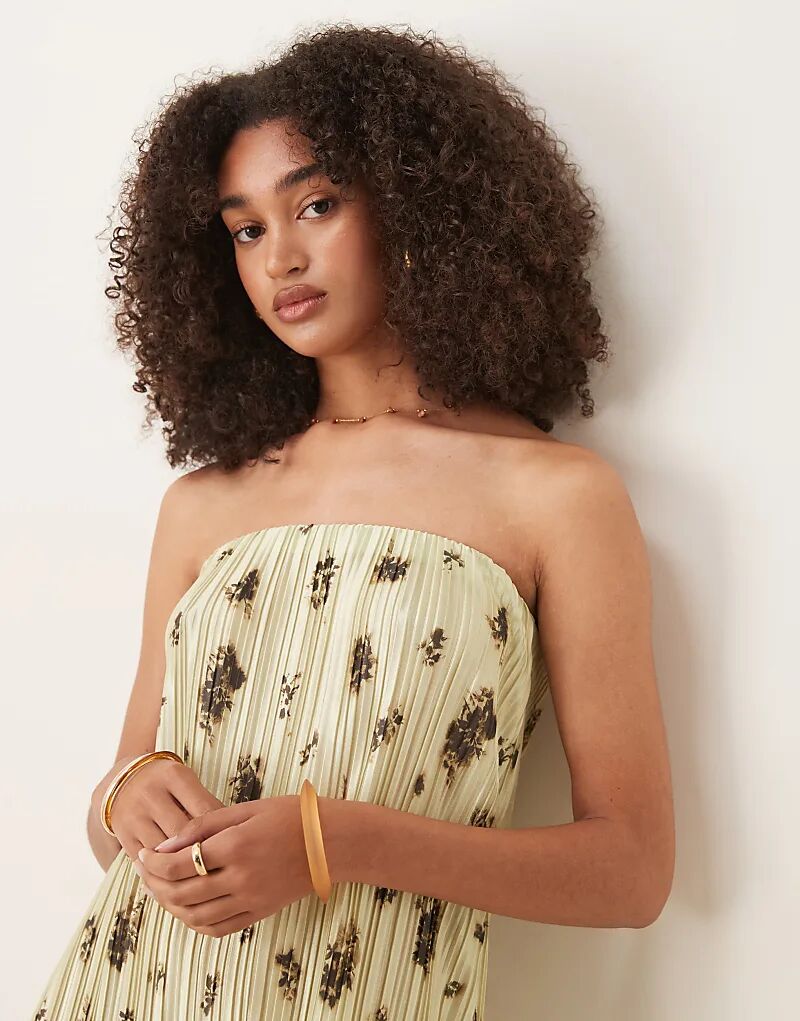 Мини-платье-бандо ASOS DESIGN с плиссированным лифом и зеленым цветочным принтом