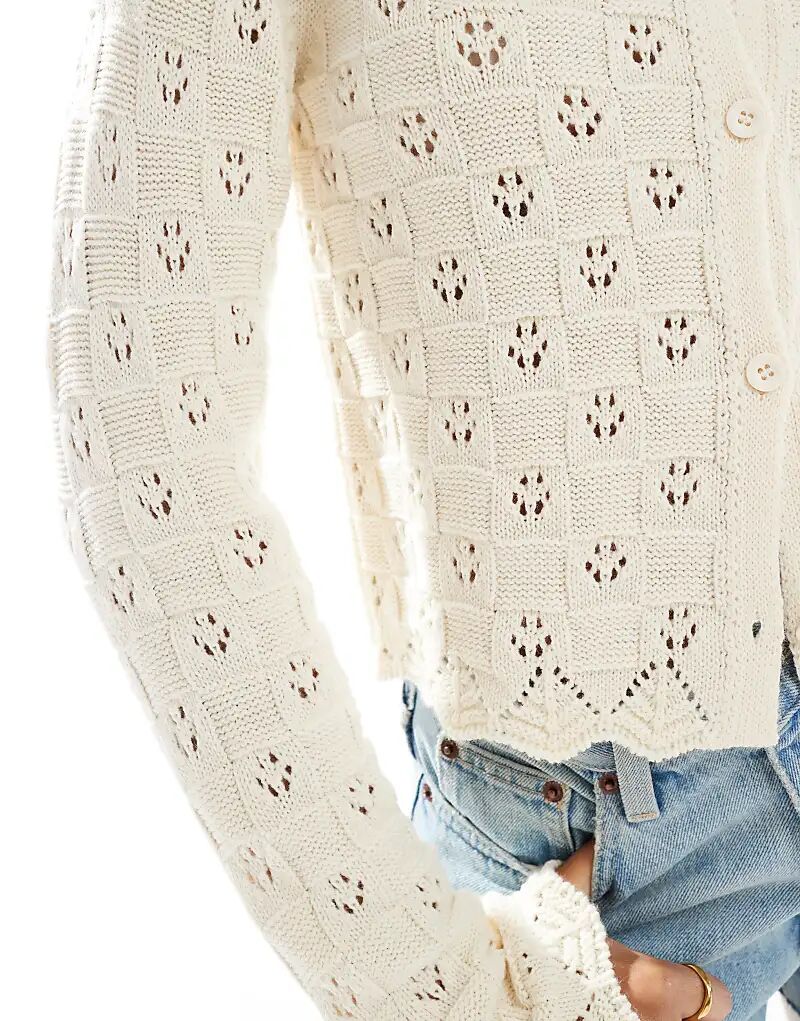 Вязаный крючком кардиган Miss Selfridge цвета масла