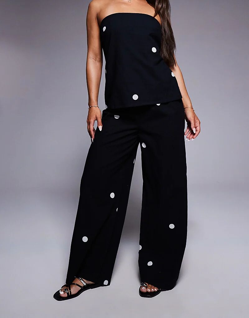 Брюки River Island с принтом в горошек черного цвета 5 841₽