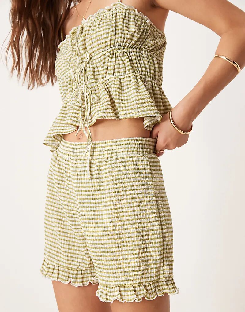 Шорты ASOS DESIGN с отделкой ришелье в зеленую клетку — часть комплекта
