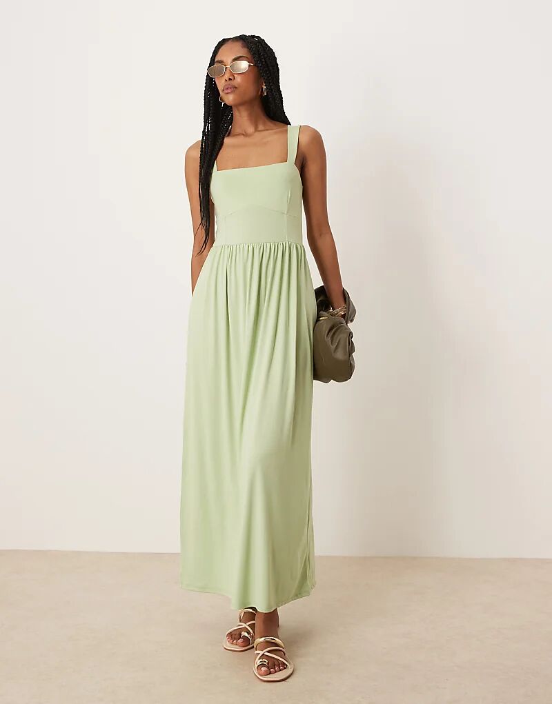 Платье миди ASOS DESIGN с квадратным вырезом цвета шалфей