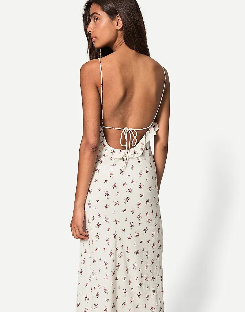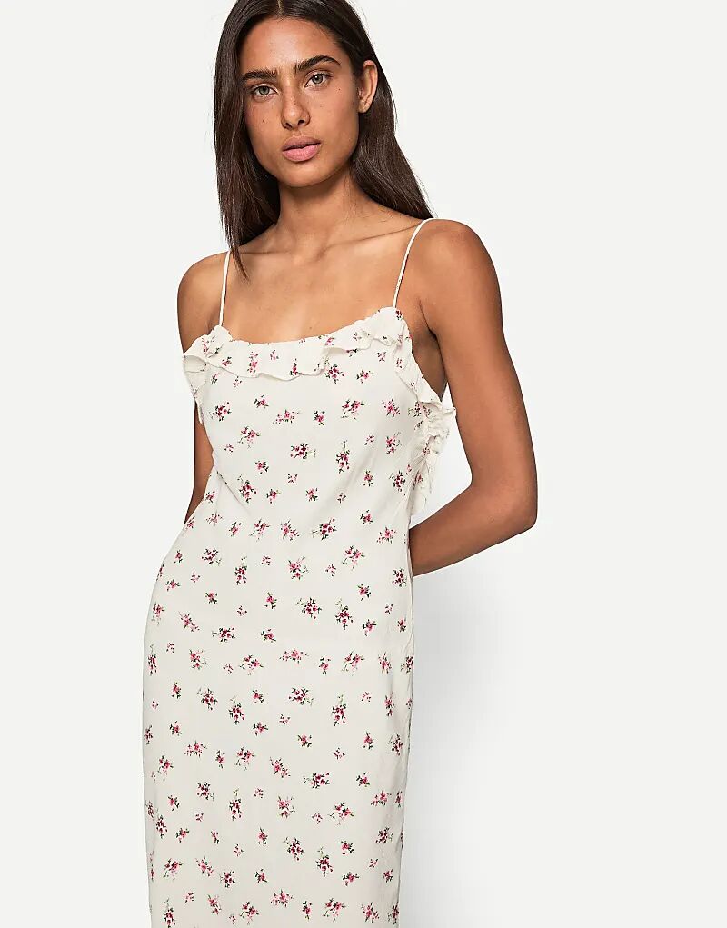 Платье миди Bershka с принтом и бретельками белого цвета 2 555₽