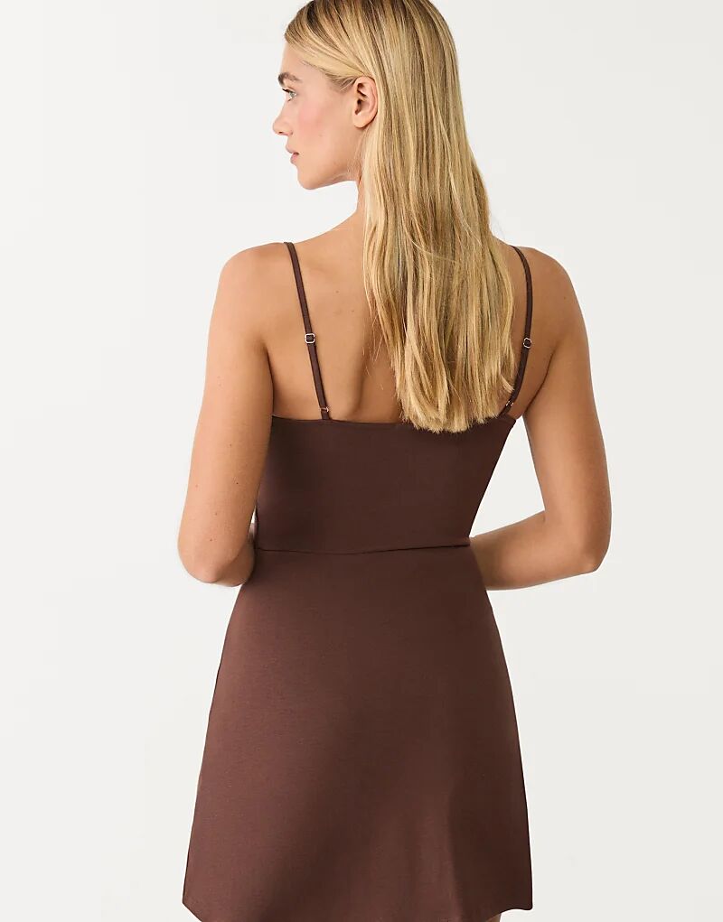 Коричневое платье-комбинезон Stradivarius на бретелях