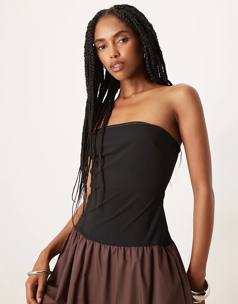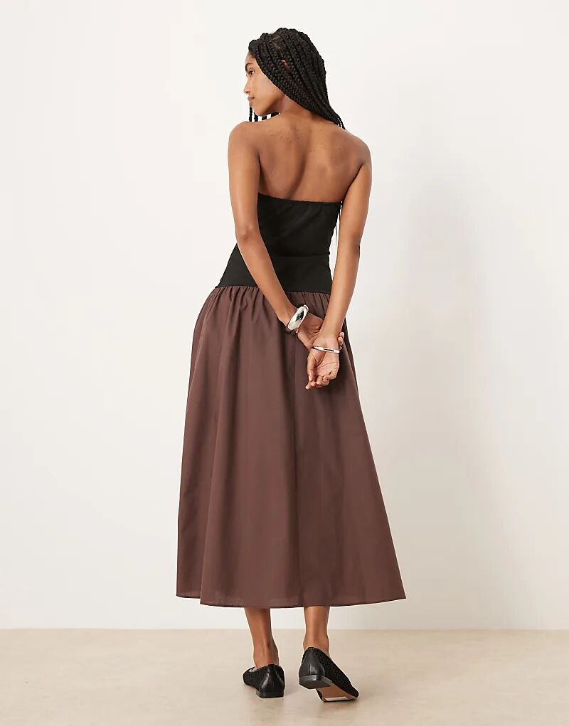 Платье-бандо миди-гибрид ASOS DESIGN коричневого цвета