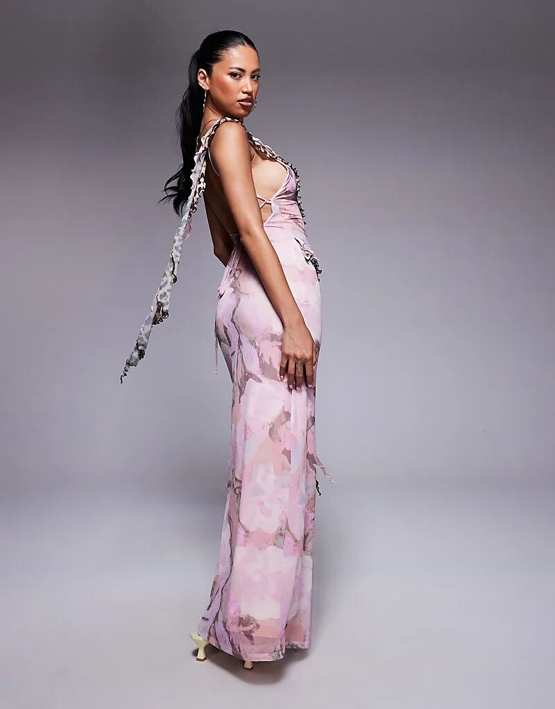 Платье макси ASOS DESIGN на бретелях с оборками и цветочным принтом