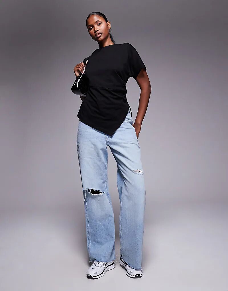 Футболка River Island с драпировкой по бокам, черная 3 851₽