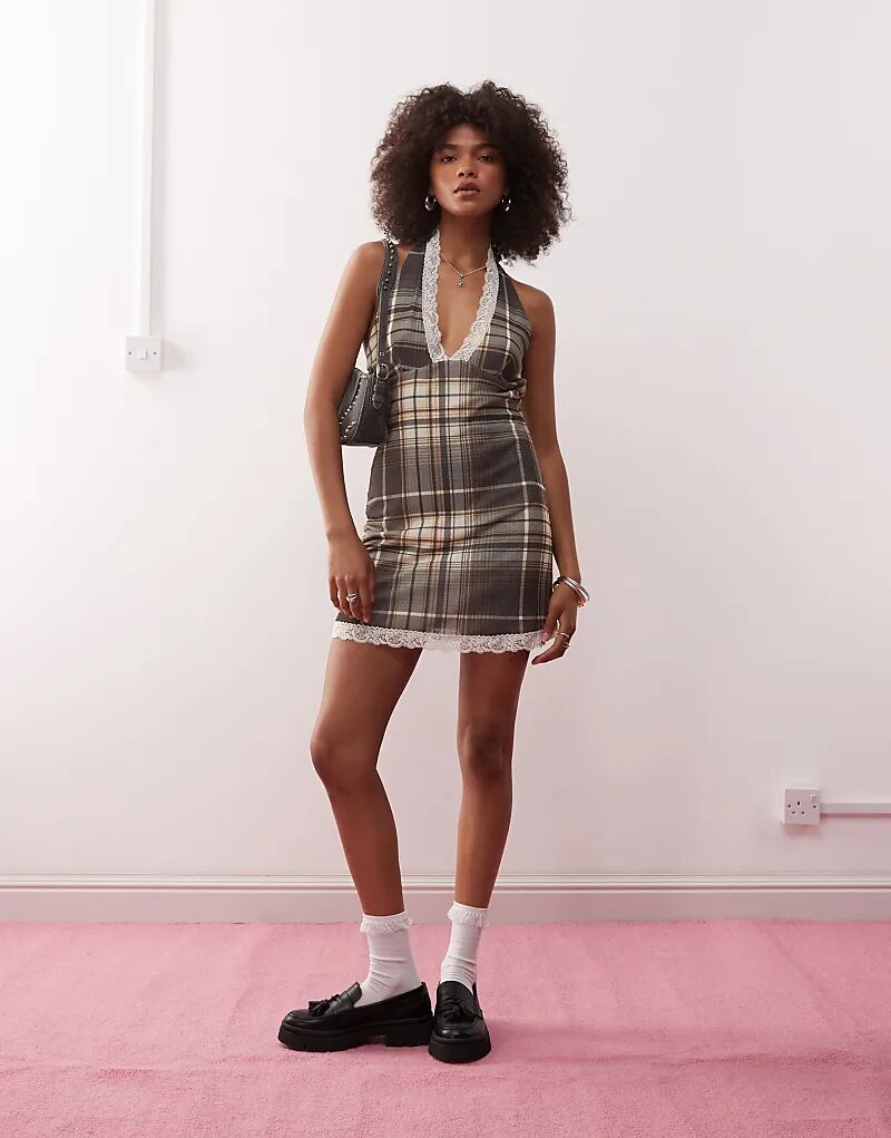 Мини-платье COLLUSION в клетку и кружево бежевого цвета 3 144₽