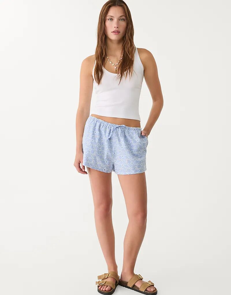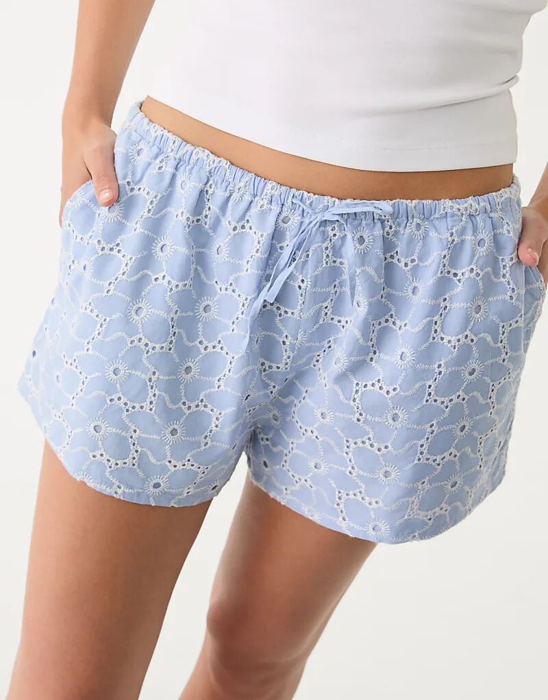 Шорты Stradivarius с контрастной вышивкой синего цвета