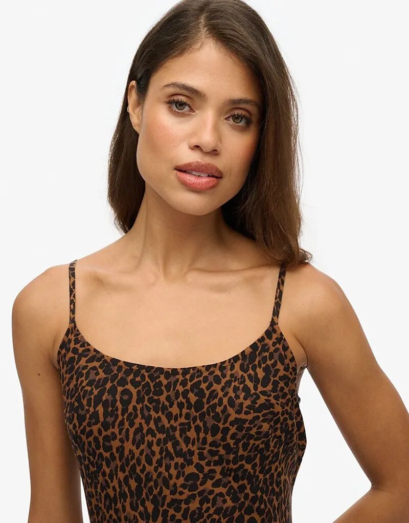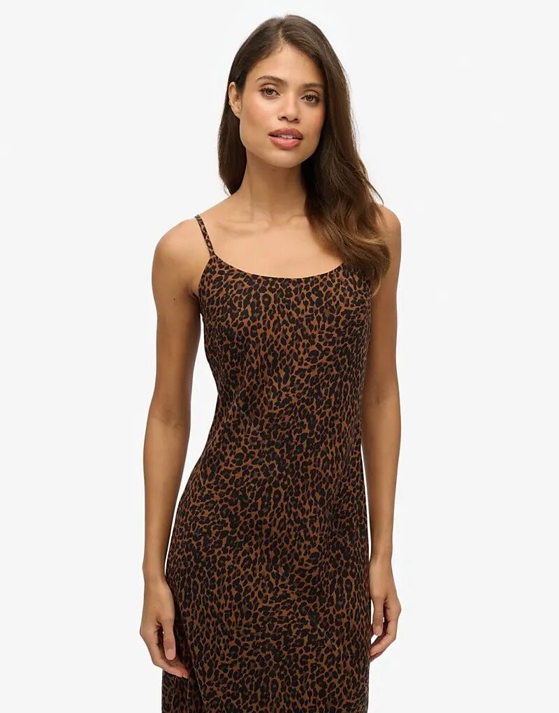 Платье-комбинация макси Superdry с косым кроем в цвете леопард