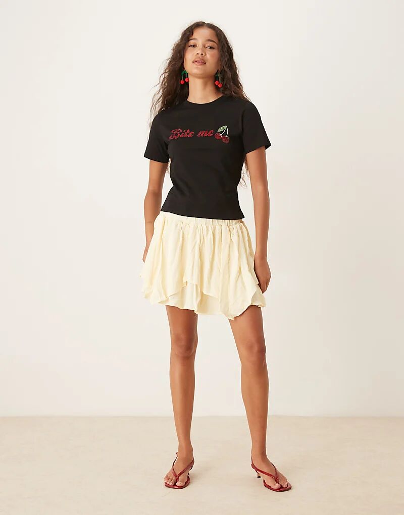 Футболка с надписью «Bite Me Cherries» от Never Fully Dressed, черная