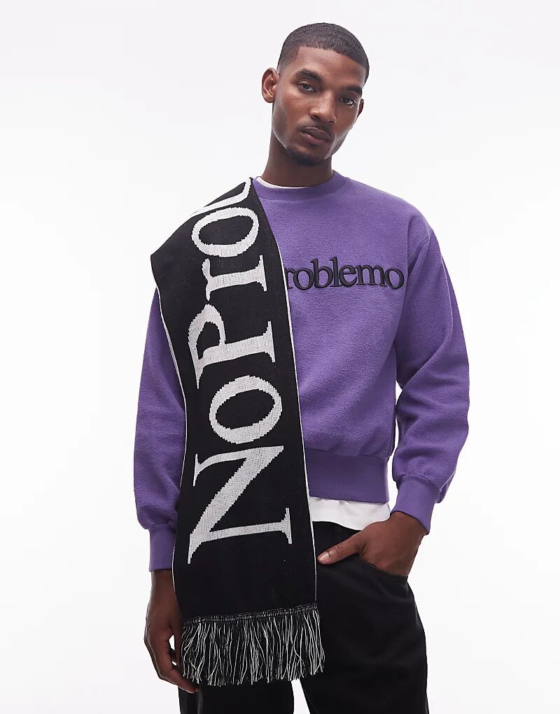Двусторонний шарф с логотипом No Problemo в черно-белом цвете