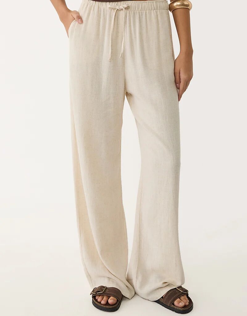 Брюки Stradivarius из льняной смеси в цвете «камень»