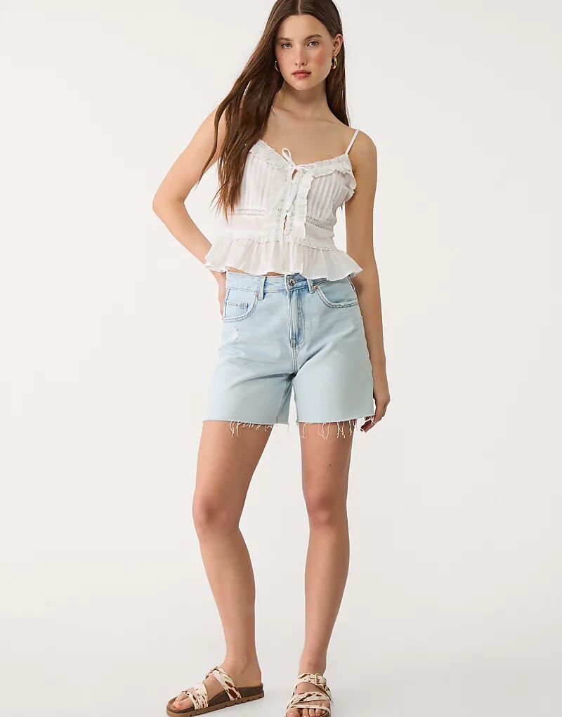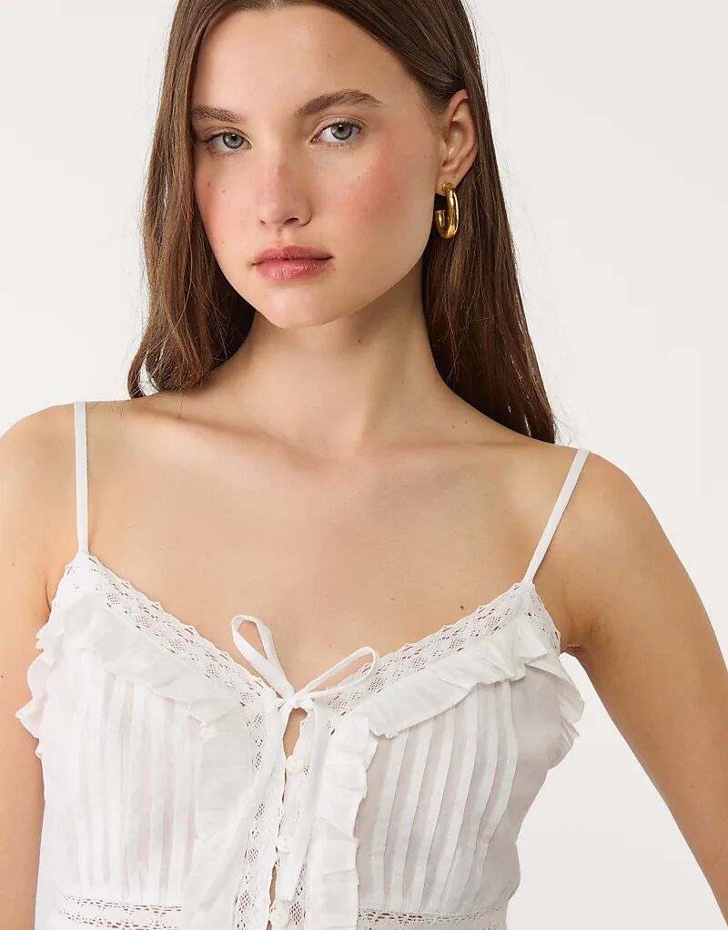Топ Stradivarius с рюшами и бретельками белого цвета