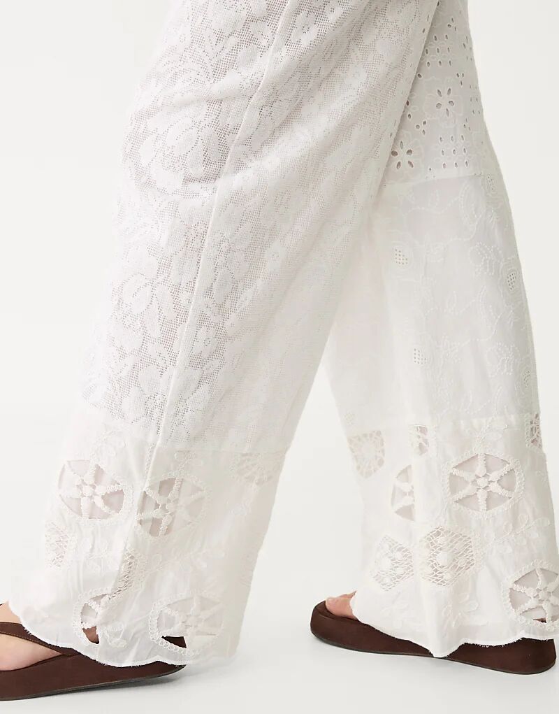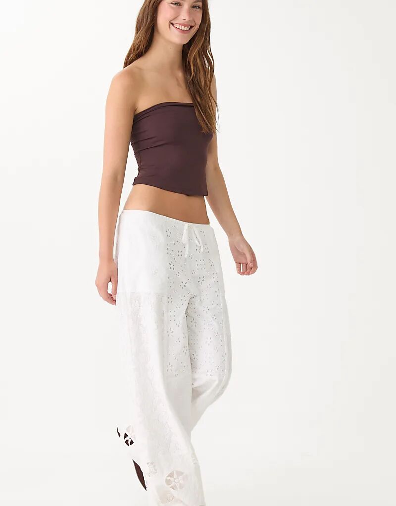 Вышитые брюки Stradivarius в стиле пэчворк белого цвета 8 268₽