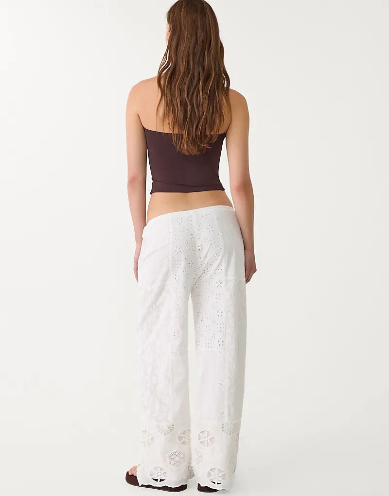 Вышитые брюки Stradivarius в стиле пэчворк белого цвета